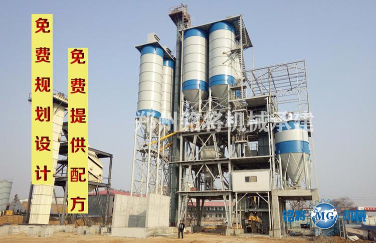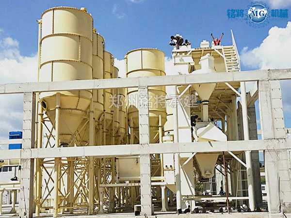 由郑州铭将最新设计的年产10-30万吨全自动预拌砂浆生产线主要由砂子烘干系统及预拌砂浆混合系统两部分组成。亦可根据需要增配破碎制砂系统。主要包含砂子烘干系统、筛分系统、原料储存系统、自动配料系统、气动系统、除尘系统、成品包装系统、散装罐车包装系统、及自动控制系统等,如需要可在此基础上增配实时动态监控。