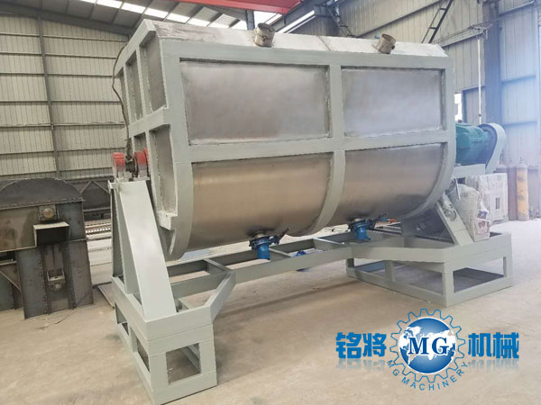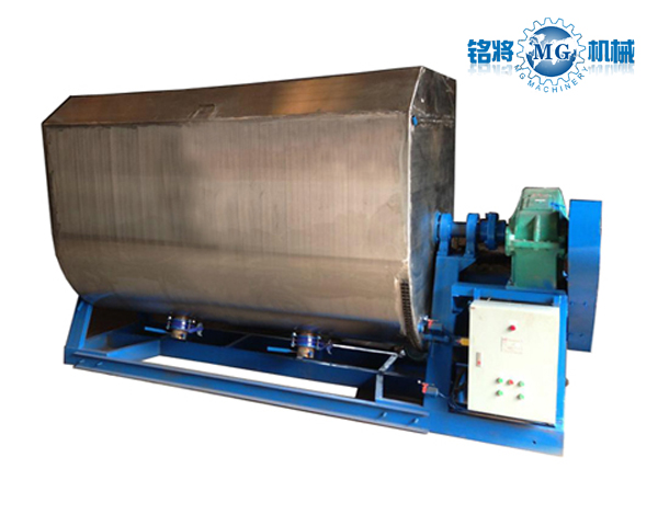 本产品采用U型外观设计,内部采用双层螺带设计。即在水平的主轴上装有两条或多条输送能力相同,螺径不同,螺转方向不同的螺带。通常是当主轴转动时,一条螺带把物料从左至右输送,另一条螺带把物料从右至左输送。因而在机内发生对流穿插混合作用,达到混合均匀的目的。
