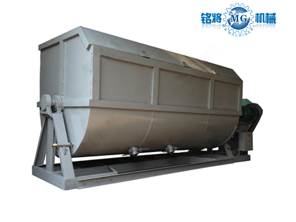 本产品采用U型外观设计,内部采用双层螺带设计。即在水平的主轴上装有两条或多条输送能力相同,螺径不同,螺转方向不同的螺带。通常是当主轴转动时,一条螺带把物料从左至右输送,另一条螺带把物料从右至左输送。因而在机内发生对流穿插混合作用,达到混合均匀的目的。
