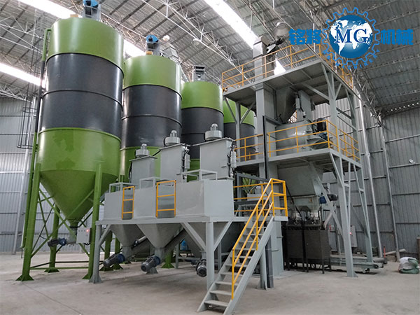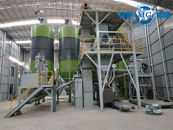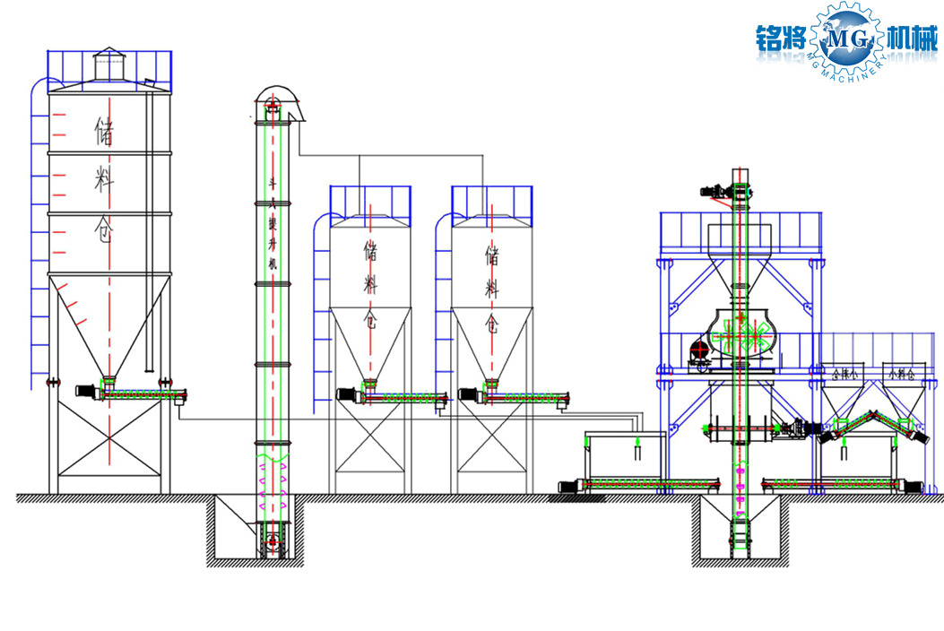 该生产线,是我公司自主研发的用于生产灌浆料、预应力管道压浆料、特种砂浆等超细粉物料混合的专用设备。主要用于直径小于300目的骨料砂浆的生产。由原料储料罐、螺旋输送机、骨料自动计量系统、添加剂自动计量系统、斗式提升机、预混仓、无重力混合机、成品仓、自动包装机、除尘系统、钢架平台、控制系统等组成。 可生产年产5万吨、10万吨、20万吨、30万吨产量设备,也可根据客户的需求定制。