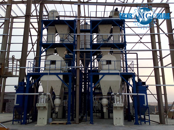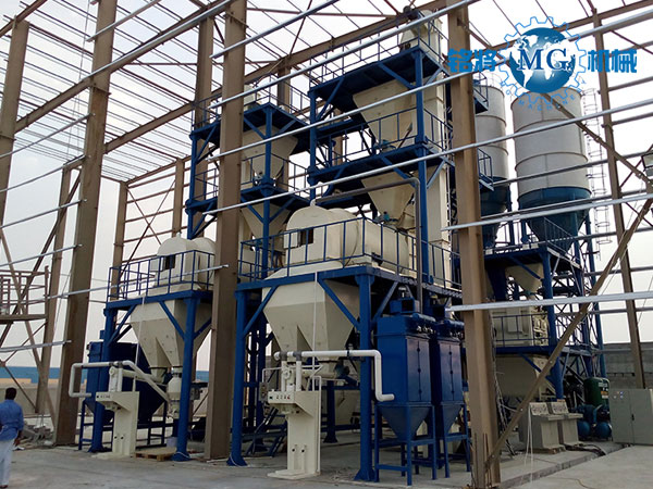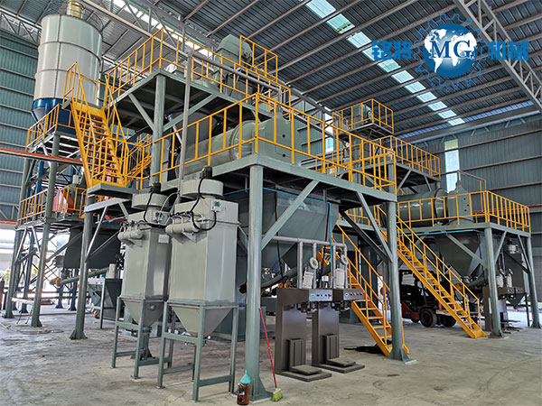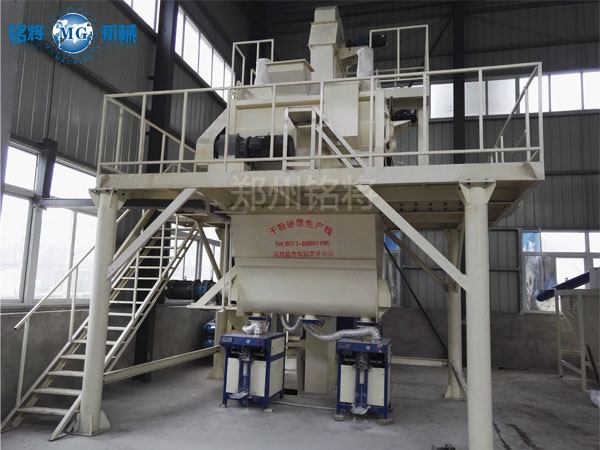 郑州铭将机械设备有限公司生产的全自动保温砂浆设备主要是由提升机、预混仓(可选)、小料仓、混合机、成品仓、包装机、除尘器、电控柜、气相平衡系统组成。采用双轴无重力混合机,不破坏物料的原始状态,确保了砂浆的保温系数不会因保温原料的形状破坏而降低,确保了产品的保温效果。