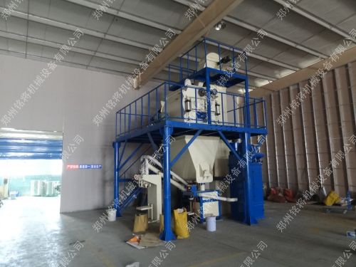 干粉砂浆设备生产线主要是由提升机、预混仓、小料仓、混合机、成品仓、包装机、除尘器、电控柜、气相平衡系统组成。采用双轴桨叶高效混合机,不破坏物料的原始状态。