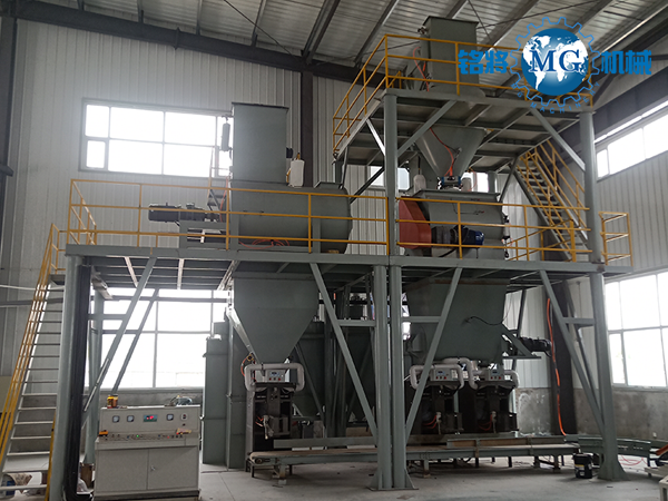 3.大型干混砂浆设备年产量高达数十万吨,一般阀口装袋无法满足需求,卸料方式为散装或组合散装装袋。