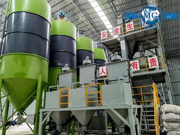 灌浆料生产线,是我公司自主研发的用于生产灌浆料、预应力管道压浆料、特种砂浆等超细粉物料混合的专用设备。主要用于直径小于300目的骨料砂浆的生产。由原料储料罐、螺旋输送机、骨料自动计量系统、添加剂自动计量系统、斗式提升机、预混仓、无重力混合机、成品仓、自动包装机、除尘系统、钢架平台、控制系统等组成。可生产年产5万吨、10万吨、20万吨、30万吨产量设备,也可根据客户的需求定制。