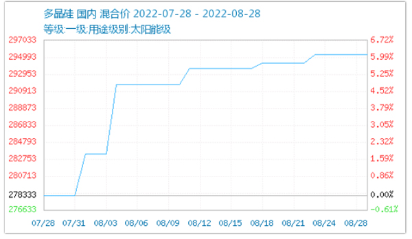 光伏产业链,多晶硅报价从8月初的278333元/吨涨至294993元/吨,大涨16660元。