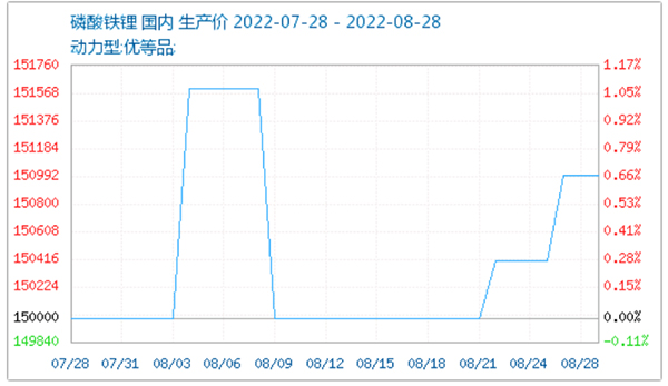 同时,近期磷酸铁锂价格有所回升,从150000元/吨涨至150992元/吨。