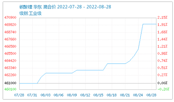 有料网了解到,近日锂价持续上涨,企业现货资源惜售为主。根据生意社数据,碳酸锂近期价格持续上涨,自461000元/吨涨至469820元/吨。