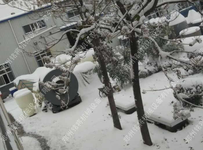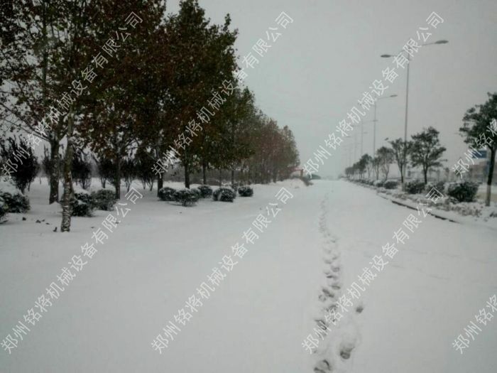 雪是个很美妙的东西。瑞雪兆丰年,在民间人们把雪当成一种征兆,预示着来年风调雨顺、五谷丰登、吉祥如意、幸福安康等等。在此,小编祝愿铭将机械的所有员工和客户都事事如意顺心,感谢你们对郑州铭将机械设备有限公司长久以来的信任与支持,铭将机械在以后的发展中会再接再厉,更上一层楼。