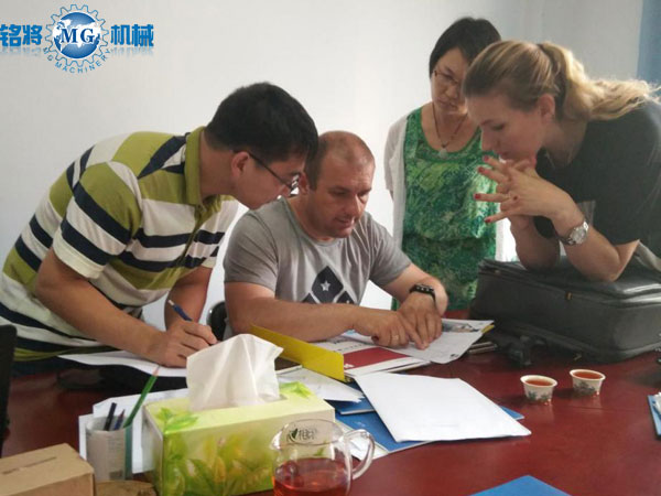 1.2017年6月21日,塞尔维亚SABA BELCA公司高管韦隆.艾特米先生一行考察我公司,共同讨论年产10万吨干粉砂浆生产线项目方案: