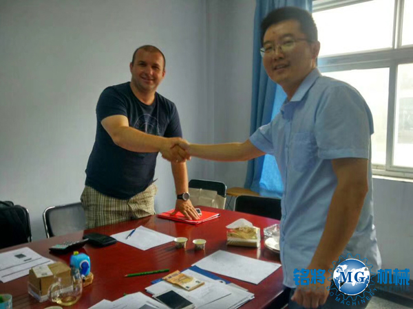 2. 2017年8月16日,韦隆.艾特米先生一行再度考察我公司,然后确定了年产10万吨干粉砂浆方案。现场签约并现付5000欧元作为合同定金: